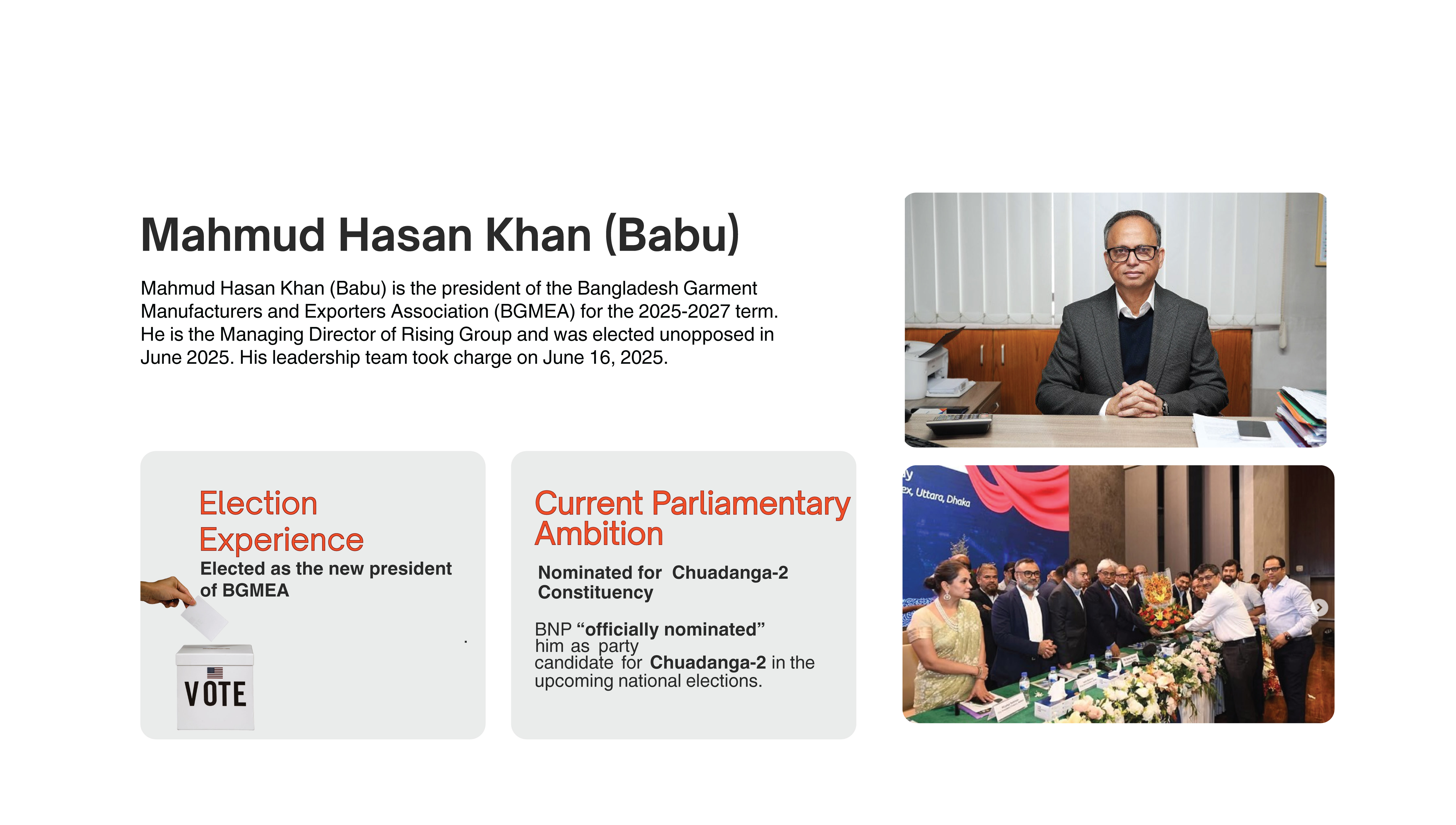 জনাব মাহমুদ হাসান খান ২০২৬ সালের সংসদ নির্বাচনে চুয়াডাঙ্গা-২ আসনে এমপি পদপ্রার্থী। তিনি চান তার ইশতেহার হোক জনসাধারণের আকাঙ্ক্ষার প্রতিফলন। তিনি বিশ্বাস করেন যে ইশতেহার কেবল প্রার্থী বা দল এর নয়, বরং জনগণের আকাঙ্ক্ষা পূরণের পরিকল্পনা। তাই আপনার মতামত শেয়ার করুন এবং তাকে সত্যিকার অর্থে জনগণের দ্বারা পরিচালিত এবং জনকল্যাণমূলক একটি ইশতেহার তৈরি করতে সহায়তা করুন।